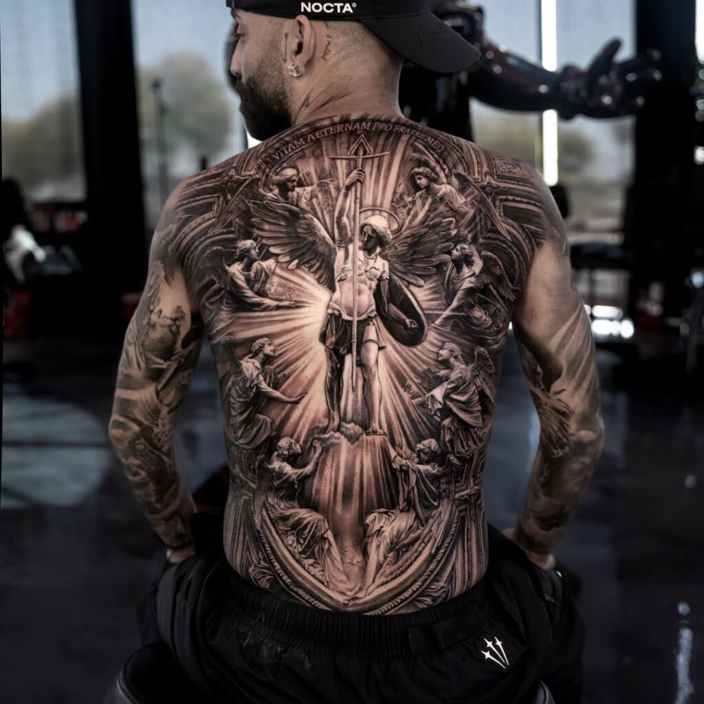 Javi Cinco Angeles es un tatuador que domina a la perfección el estilo Realista y es por ello que Sergio Ramos confía plenamente en todo su arte. Igual conocéis a Javi por el canal de youtube que tenía con otro artista muy conocido: Ink Bro TV. Podéis encontrarlo tatuando en su propio estudio “Cinco Ángeles” en Valdepeñas (Ciudad Real).