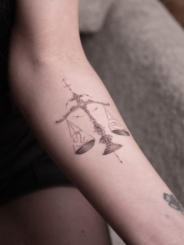 Un tatuaje de Libra representa armonía, justicia y equilibrio emocional. Este signo está ligado a las relaciones y a la búsqueda de la belleza, por lo que los tattoos de Libra simbolizan paz interior y conexión con los demás. Es un diseño de tatuaje elegante, ideal para quienes valoran la simetría y el balance.