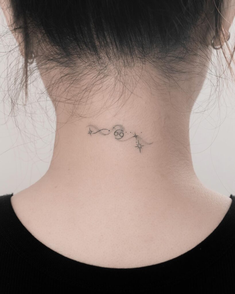 Los tatuajes de Cáncer están cargados de emoción y sensibilidad. Este signo simboliza protección, intuición y vínculos profundos, por lo que un tatuaje inspirado en Cáncer suele representar el amor por la familia, el hogar y los recuerdos. Es un diseño de tatuaje con un fuerte componente emocional y espiritual.