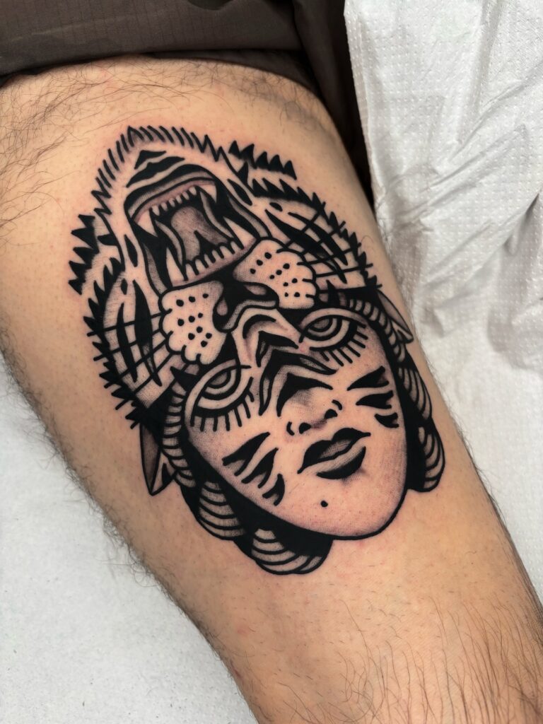 Jesús Obregón es un talentoso tatuador afincado en Sevilla, reconocido por su dominio del Compositional Realism Tattoo. Su especialidad en blanco y negro le permite crear piezas que no solo destacan por su realismo, sino también por la manera en que se integran en el cuerpo, adornándolo con composiciones equilibradas y llenas de fuerza visual. Actualmente trabaja en el estudio Atra, en Sevilla, donde se ha consolidado como una de las figuras más prometedoras de la escena del tatuaje andaluz.
